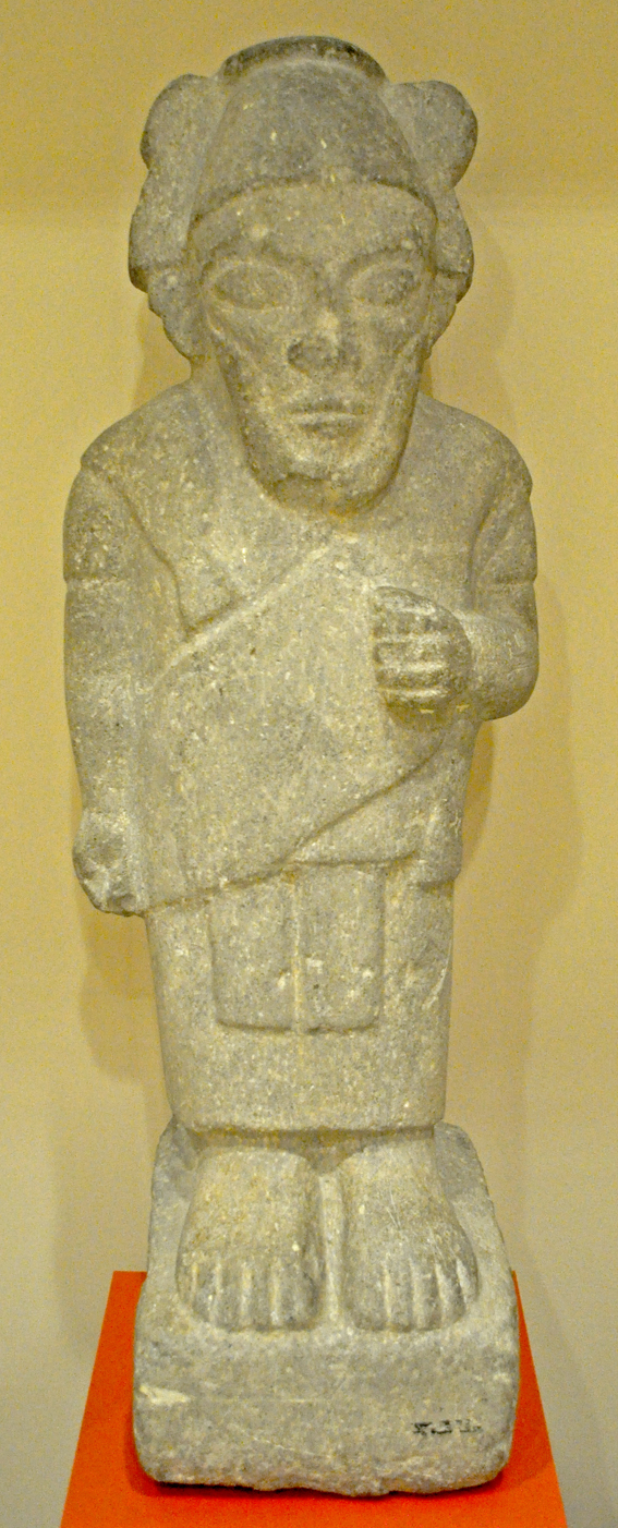 نحت تمثال هذا الرجل من الحجر الرمادي الصلب. ذراعه الأيمن ممدوداً إلى الجانب وقبضة يده مغلقة‘في حين يمتد الذراع الأيسر حول المعدة مع بقاء قبضة اليد مغلقة ويرتدي شالاً فوق ثوب هو زي آرامي سوري. قدما التمثال مضمومتان إلى بعضهما وهو يقف على منصة. يبين التمثال أن الرجل يرتدي تاجاً فرعونياً. لا توجد نقوش على القاعدة، لكن الوقفة الرسمية للتمثال ولباسه وتاجه تشير إلى أن هذا التمثال هو تمثال ملك.